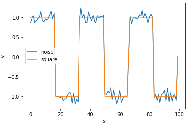 LSTMニューラルネットワークに、ノイズを重畳した矩形波の時系列データを入力し 未来どのような値になるかを予測することを試みます。