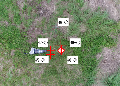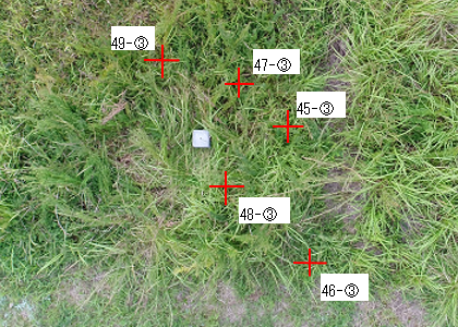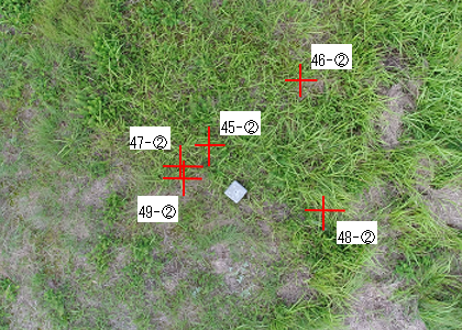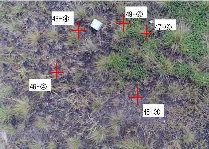 録画映像から実際に飛行した位置を求めるため、ウェイポイント点に配置したセメントブロックからの距離を計測しました。