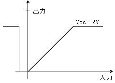出力電圧はVCC-2V程度です。負荷が低負荷の場合でもOPアンプが 活性領域にあるように、また、最大ロード負荷加時、OPアンプが飽和しないように 注意しなければなりません。 |