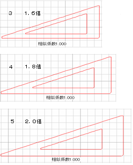 同一部品を上下方向に1.2倍、1.4倍、1.6倍、1.8倍、2.0倍拡大した時の相似係数