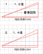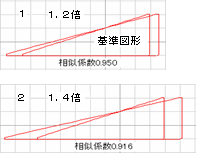 同一部品を左右方向に1.2倍、1.4倍、1.6倍、1.8倍、2.0倍拡大した時の相似係数