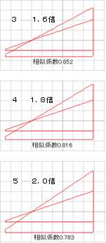 同一部品を1.2倍、1.4倍、1.6倍、1.8倍、2.0倍拡大した時の相似係数